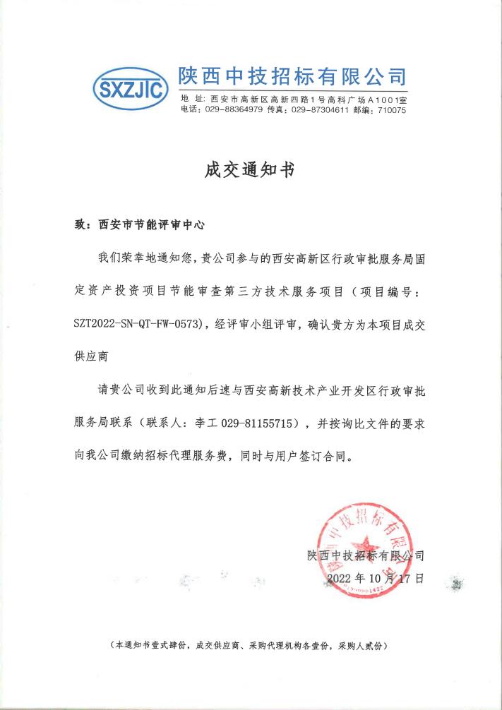 西安市節(jié)能評審中心在陜西省發(fā)展改革委投資咨詢評估“短名單”意向機構庫征集工作中成功入圍陜西省發(fā)改委機構庫,同時在西安市高新區(qū)行政審批服務局固定資產(chǎn)投資項目節(jié)能審查第三方技術服務征集活動中成為唯一指定第三方技術服務機構。