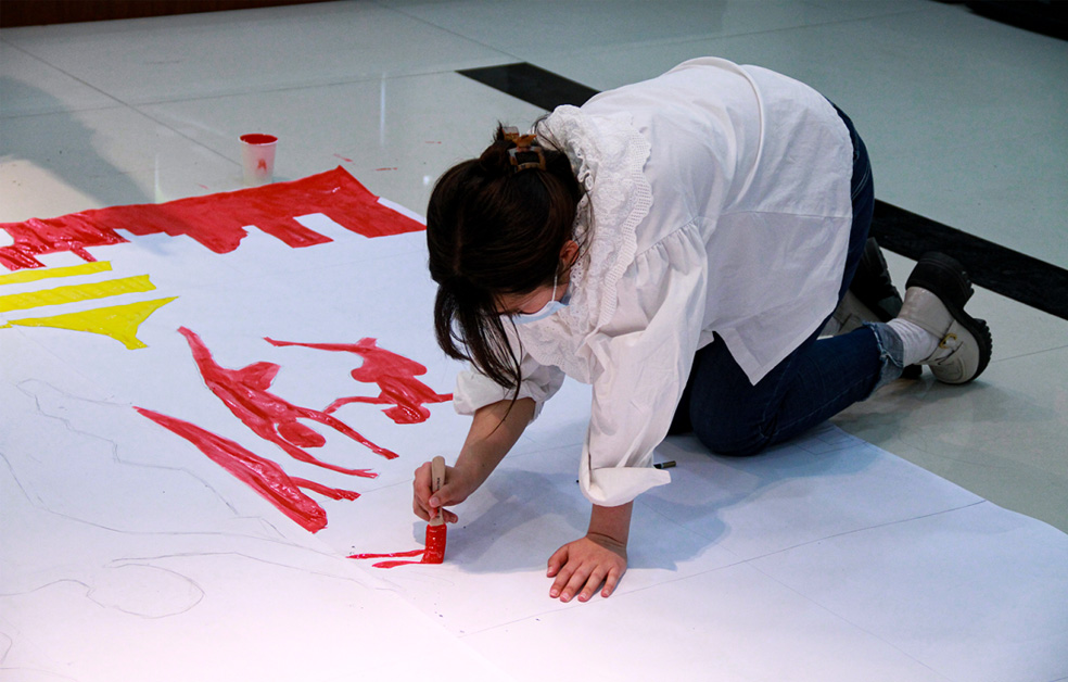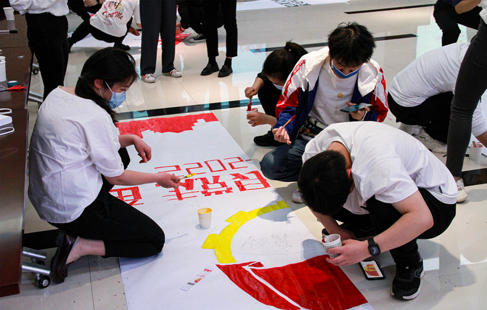 在主題團(tuán)建活動(dòng)環(huán)節(jié),團(tuán)員青年們紛紛拿起畫(huà)筆、調(diào)制顏料、發(fā)揮想象,共同通過(guò)繪就《共繪百年光輝》巨畫(huà),抒發(fā)對(duì)黨對(duì)團(tuán)的熱愛(ài),把對(duì)青春的熱情化作斑斕的色彩,為建團(tuán)100周年獻(xiàn)禮。